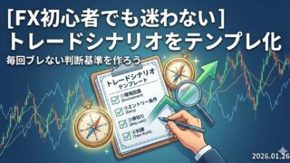 FX初心者が毎回ブレずに判断するための、トレードシナリオのテンプレ化方法を解説。環境認識・エントリー・損切り・利確を整理し、感情に左右されない安定したトレードを目指します。